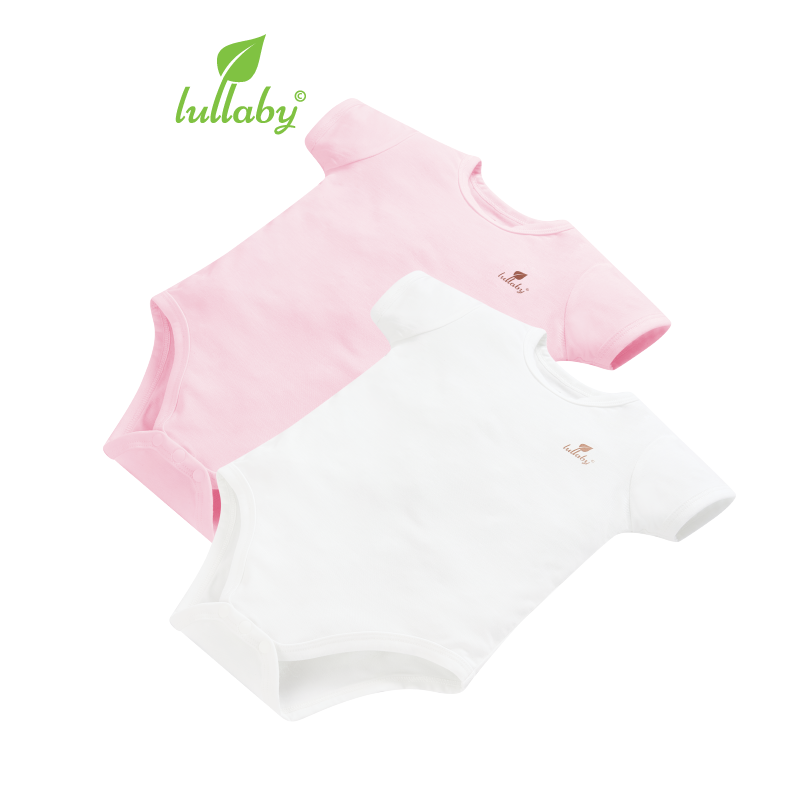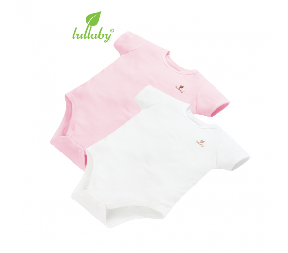 Lullaby Short Sleeves Bodysuits for baby/infant/girl- White & Pink- 2 sets/pack